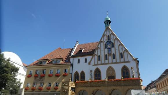 Das Rathaus am Marktplatz ist eines der Wahrzeichen von Amberg. Das heutige Rathaus wurde im 14. Jahrhundert erbaut, nachdem der Vorgängerbau 1356 bei einem Feuer zerstört wurde. Das Rathaus ist ein Wahrzeichen von Amberg und ein gerne genutztes Fotomotiv.