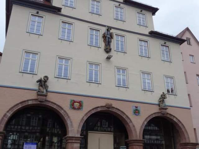 Das Rathaus in Calw am Marktplatz wurde 1954 erbaut.Nach mehrmaliger Zerstörung entstand der heutige Bau in den Jahren 1726-1730. 1929 wurde die Rathausfront renoviert. Die Figuren am Rathaus sympolisieren die drei wichtigsten Aufgaben der Stadt gegenüber ihren Bürgern.Inzwischen nach jahrelanger dringend notwendiger Sanierung zieht wieder die ganze Verwaltung gerade wieder ein. Im Erdgeschoss befindet sich nun auch die Touristeninformation