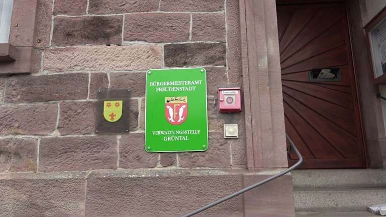 Das Rathaus von Grüntal befindet sich am Dorfplatz, direkt an der Treppe, hoch zur Kirche. Es ist ein zweistöckiges Gebäude. Das Erdgeschoß ist aus Backsteinen gemauert. Auf dem Satteldach ist eine Sirene. Mehrere Stufen führen in das Gebäude. Hier ist der Sitz der Ortschaftsverwaltung. Adresse: Forchenkopfstraße 8, 72250 Freudenstadt Geodaten: FFH9+V6 Freudenstadt