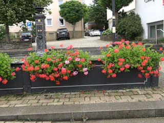 Blumengefäßen am Trog
