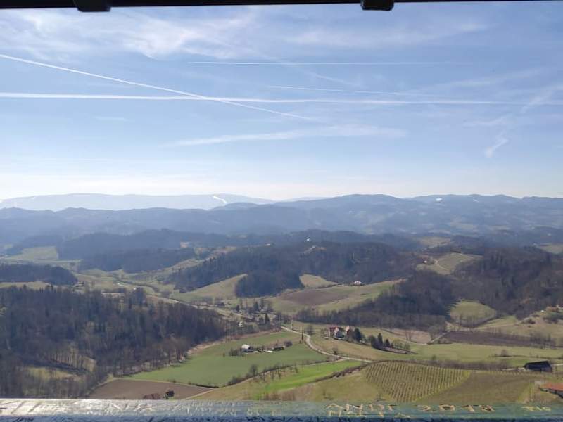 Ein wunderschöner Rundwanderweg mit lehrreichen Schautafeln ( Wein ) zwischen hügeligen Weingärten bei Spielfeld, mit einem Highlight, nämlich die Aussichtswarte Plac in Slowenien. Der Rebenwanderweg hat es in sich, bergauf und bergab, und ist über 12 km lang. Etwas Kondition ist erforderlich. Ich habe dafür ca. 4 Stunden benötigt. Er ist eigentlich gut beschildert, aber man muß doch aufpassen, daß man keine Abzweigung ( z.B. Georgiberg ) versäumt. Leider wandert man auf 80 % asphaltierten, aber wenig befahrenen Güterwegen, fast kein Schatten. Man geht vom Bahnhof Spielfeld über die Bahnüberführung, beim Schloß den Graßnitzberg hoch zu den Weinbergen an vielen Buschenschänken vorbei. Oben angekommen ( Achtung Abzweigung ! ) gehts wieder steil hinunter zum Talboden und wieder hinauf zum Buschenschank Polz. Von hier kommt man in ca. 20 Minuten über eine steilen Weg durch den Wald zur Aussichtswarte Plac in Slowenien, die auf 510 m hoch liegt. Oben erwartet uns ein wunderschöner Ausblick auf das slowenische und südsteirische Hügelland. Zurück geht es wieder beim Polz vorbei, hinunter nach Oleg mit Blick auf den slow. Autobahngrenzübergang bei Sentilj um dann wieder in einer großen Schleife zum Ausgangspunkt zurückzukommen. Höhenunterschied dürften ungefähr 450 m insgesamt sein. Diese Wanderung hat mir gut gefallen.