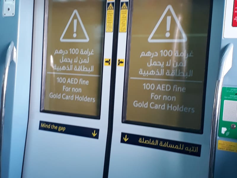 War ich vor 3 Jahren noch hellauf begeistert, hat mich der aktuelle Besuch in Dubai auf den Boden der Tatsachen zurück geholt. Während es sich vor 3 Jahren noch gelohnt hat ein Goldklasse Ticket zu kaufen, wenn man einen Sitzplatz ergattern möchte, ist der Wagen mit den wenigen Sitzplätzen mittlerweile zu fast jeder Tageszeit überfüllt. Nur in den frühen Morgen- oder späten Abendstunden kann man noch entspannt reisen. Während der Rushhour ist der Wagen nicht nur heillos überfüllt, es gibt auch lange Warteschlangen mit erheblichen Wartezeiten um überhaupt in den Wagen zu kommen. Bei Vorlage eines Schwerbehindertenausweises wird man von der Security allerdings auf Position 1 vorgelassen. Leider wird nicht kontrolliert ob überhaupt jeder der hinein möchte über ein Goldclassticket verfügt. Da die Strafe von 100 AED (etwa 25 Euro) sehr gering ist und ich noch nie eine Ticketkontrolle erlebt habe, bin ich der Ansicht, dass der Wagen auch von Personen genutzt wird die eigentlich über kein gültiges Ticket verfügen. Leider habe ich auch erlebt, wie Personen sogar handgreiflich geworden sind um Einlass und/oder einen Sitzplatz zu bekommen. Generell ist Dubai mittlerweile komplett überfüllt, die Straßen verstopft und die Nutzung von Verkehrsmitteln teilweise eine Gefahr für Leib und Seele.