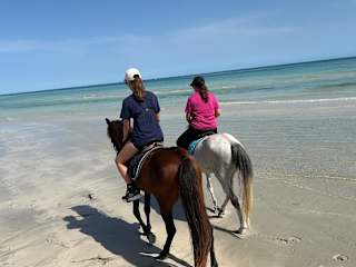 Ich war nun schon 6x in Djerba und habe jeden einzelnen Ritt hier unternommen. Die Ranch ist in absolut ruhiger Lage, aber auch nicht weit weg von der Hauptstraße und Strand und Hotels (wovon man auch zu Fuß die Ranch erreicht). Sehr sehr geschmackvoll angelegt, man kennt auch den Pferden an, dass es ihnen hier gut geht: körperlich als auch vom eigenen lebendigen Charakter und jedes einzigartig. Sie sind sehr sehr gut ernährt und absolut gut gepflegt, beim Reiten kommen sowohl Anfänger auf ruhigeren als auch Fortgeschrittene auf temperamentvollen Pferden voll und ganz auf ihre Kosten, langweilig ist kein einziger Ritt. Ein Ritt kann sowohl ruhig und gemütlich als auch im wilden Galopp erfolgen, ganz nach den eigenen Wünschen. Ein weiterer Pluspunkt: die Pferde hier werden nicht ausgetauscht und gehöuren somit wirklich zur Ranch! Die beiden Besitzer, Ali und Majid, sind ebenfalls sehr liebe Menschen: ehrlich, humorvoll und nicht aufdrängend. Außerdem verstehen sie EINWANDFREI den richtig österreichisch-bayrischen Dialekt. Kommunikationsprobleme ist hier ein Fremdwort. Man kann auch direkt hier wohnen und hat das Reiten mitinbegriffen. Dies ist absolut empfehlenswert für alle, die gerne Ruhe und Tiere (Pferde) mögen. Abends, wenn die Pferde versorgt sind und die Ranch nur noch von einem selbst bewohnt wird, ist es besonders schön, den Tieren zuzusehen und der Stille zuzuhören. Oder nachts, wenn manche Pferde schnarchen. Die Verpflegung lässt ebenfalls keinen Wunsch offen. Man isst nie zu wenig und oft zu viel, weil es einfach so gut ist! Majid, der sich v.a. um die Verpflegung kümmert, kocht für eine ganze Mannschaft und man schmeckt, dass er es gern tut. Wenn man etwas bestimmtes will oder braucht dann bleibt dies auch nicht ungeachtet. FAZIT: Tolle Ranch, tolle Pferde und tolle Menschen hinter alledem! Jedes Jahr immer wieder gerne! :-)