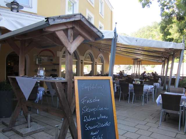 Nettes Restaurant mit Terasse oberhalb der Donau