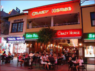 Der beste Platz um das Nachleben in Alanya am Hafen zu starten, hier trifft sich ab 23,00h das Partyvölkchen aus Alanya, um bei ein paar coolen Drinks und fetter Musik sich fit zu machen, für eine lange Partynacht... Lagebeschreibung: CrazyHorse liegt im Zentrum, nur wenige Meter vom Hafen, in der "Juwelierstrasse" Ecke "Bankenstrasse" . Vom Atatürk-Denkmal an der Isbank und der grossen Moschee vorbei, Nebenan liegt das Havana unbedingt danach besuchen..Open Air-Disco vom feinsten Hinweis/Insider-Tipp: Tagsüber ein guter Platz, um während des Shoppings Pause zu machen, man sitzt Super, kann sich mit Freunden zu einem, übrigens bestem Kaffee in Alanya, treffen. Ausstattung: mit Bar
