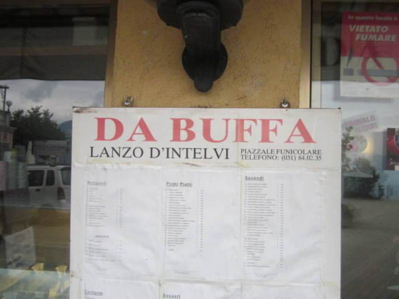 DAs Da Buffa liegt direkt am Belvedere von LAnzo und bietet eine sehr schöne Atmosphäre und Einrichtung. Zudem ist eine tolle Terrasse vorhand mit Blick auf den Luganer See und die Schweiz. Der Service ist sehr freundlich und die Chefin trauert den alten Zeiten nach, an denen die Seilbahn viele Touristen brachte. Die Qualität war sehr gut und die Preise sehr moderat.