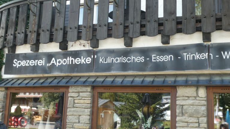 In der Freiherr-von-Brutscher-Strasse 1 in Oberstdorf befindet sich „Die Spezerei“. Es gibt Sitzplätze im Innenraum und im Freien vor der Spezerei mit Blick in Richtung zum Kurpark und zur Kirche. Es ist eine Mischung aus Café, Bistro, Vinothek, Bar, Gartenwirtschaft und vielleicht auch noch mehr. Zwischen dem Erdgeschoss und dem ersten Stock steht geschrieben: Spezerei „Apotheke“ Kulinarisches – Essen – Trinken – Wohnen – Garten – Kunst. Von den Plätzen im Freien hat man einen guten Ausblick auf den Kurpark und die Umgebung. Der Service war sehr freundlich und nett, jedoch sind mir die Preise bei der Spezerei recht hoch vorgekommen.