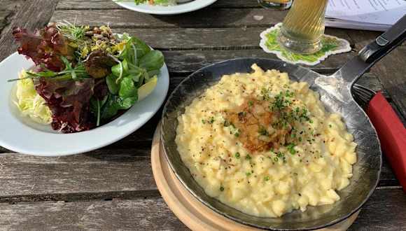 Schönes Restaurant mit nettem Garten in Thalkirchdorf. Wir waren am Ostersonntag auf der Heimfahrt vom Alpsee nach Oberstaufen und sind per Zufall am Dorfhaus in Thalkirchdorf vorbei gefahren. Also haben wir uns zum Abendessen in den netten Garten mit Brunnen in der Mitte gesetzt. Der Service war erstklassig - freundliche Damen im Dirndl. Wir wollten die Allgäuer Klassiker probieren & haben Käsesuppe und Allgäuer Käsespätzle mit Beilagensalat probiert. Es war auch kein Problem anstatt des Blattsalates von der Karte den gemischten Salat als Beilage zu den Käsespätzle zu bekommen. Das Essen hat uns sehr gut geschmeckt und das Preis-/Leistungsverhältnis ist hier super! Wenn es uns mal wieder in die Gegend verschlägt, werden wir bestimmt wieder im Dorfhaus anhalten.