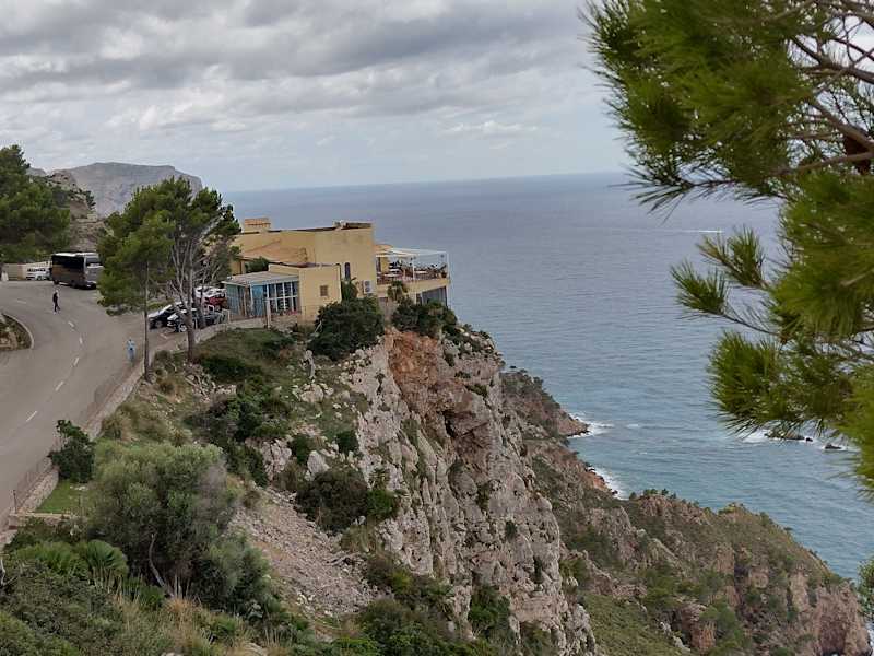 Auf dem Weg nach Valldemossa von San Telmo her, muss man hier vorbeikommen. Die Aussicht ist traumhaft. Man sieht türkisgrüne Buchten, grosse und kleine Schiffe….Essen/Trinken kann man auch was. Die Auswahl ist nicht so üppig. Die Bedienung klappte aber recht schnell.