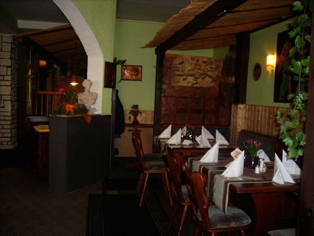 Wir waren an einem Freitag Abend im griechischen Restaurant in Bad Grund. Das Essen war sehr lecker, Gyros jeweils mit Metaxasoße und Käse überbacken und einmal Gyros solo mit Tzaziki, Pommes und Salat. Das Fleisch war sehr zart und es ist wirklich zu empfehlen. Auch die Preise sind dafür o.k. 9,-€ bzw. 9,50€. Nachdem wir mit essen fertig waren, bemerkten wir Aktivitäten im Restaurant. Es stellte sich heraus, dass der Wirt Jannis und seine deutsche Partnerin Conny, an diesem Abend Neueinweihung feierten. Das Restaurant hatte erst am Tag davor, nachdem es einige Zeit geschlossen gewesen war, wieder eröffnet. Es kam dann so ein Alleinunterhalter mit Hammondorgel und Trompete, der für Musik und Stimmung sorgte, und so saßen wir noch lange Zeit hinterher am Tresen und tranken Ouzo mit dem Wirt. Es war ein sehr schöner Abend und wir wünschen dem neuen Restaurant viele nette Gäste und ein langes Weiterbestehen. Es ist jetzt wohl unter dem Namen " Europa " eröffnet, vorher hieß es Kreta. Aber es ist nicht zu übersehen, direkt an der Hauptstraße in Bad Grund, in der Nähe des Kurzentrums.