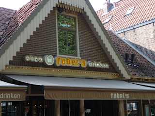 Fabel's ist mitten im Zentrum von Bergen, direkt am Platz rund um die Ruinenkirche. Man kann mit einen späten Frühstück starten, es gibt eine gute Mittagskarte mit kleinen Gerichten, Kaffee und Kuchen und eine sehr gute Abendkarte. Die Küche bietet eine Querschnitt durch die niederländische Küchen mit asiatischen Einflüssen. Am Abend ist besonders die Etagére mit verschiedenen Speisen für 2 Peronen zu empfehlen. Auch die Hausweine sind gut. Drinnen wie draußen sitzt man gemütlich zum Teil an längeren Tischen, mitunter auch mit anderen Leuten zusammen, also nichts für Menschen die nur für sich bleiben wollen. Tische kann man erst ab 6 Peronen reservieren, sonst einfach kommen und an der Bar solange warten, bis ein Platz frei wird. Das Preisniveau bewegt sich im mittleren Segment.