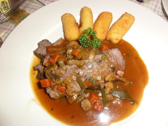 Das Restaurant Gablerbräu befindet sich in der Linzergasse gegenüber vom Aufgang zum Kapuzinerberg. Es gibt im Lokal drei Stuben, von denen eine sehr modern eingerichtet ist. Wir hatten zum Mittagessen einen Tisch in der gemütlichen Richard-Mayr-Stube reserviert. Dort wurden wir freundlich und aufmerksam bedient. Das Essen hat uns ganz gut geschmeckt und war für Salzburger Verhältnisse preislich noch im Rahmen. Auf der Speisekarte findet man österreichische Fleischgerichte und Mehlspeisen. Die Auswahl ist allerdings nicht besonders groß. Am besten informiert man sich vorab auf der Homepage.