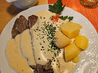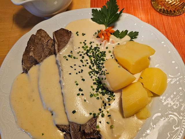 Besuch am Montag, 24. März 2025 Der Gasthof zu Sonne in Oberkirch, ist traditionsreich, mit mehr als 100 Jahren der älteste Gasthof der Stadt - mit diesen Worten wird man auf der hauseigenen Webseite begrüßt und dies konnte ich nach meinem Besuch vor Ort auch bestätigen. Nach Eintreten der ersten Türe, muss man durch eine Schwenktüre hindurch, die beidseitig sich öffnet - wenn also Gäste gerade zeitgleich den Gasthof verlassen und neue kommen, hat diese Schwenktüre etwas Konfliktpotential, da man mit selbigen zusammenstoßen kann. Nachdem diese erste Hürde genommen war :-) betritt man das ehrfürchtige Gasthaus und ein Mitarbeiter der richtig alten Gastroschule begrüßte mich und hat mir einen Tisch in Folge zugeteilt. Im Innern, ist das Gasthaus mit dunklem Holz ausgestattet - der hintere Bereich, der sogenannte "Stadl" war zu Beginn dunkel und nicht mit Licht ausgestattet, da noch zu wenig Gäste zum Zeitpunkt anwesend waren. Dieses Ambiente habe ich persönlich als leider nicht ganz einladend empfunden, auch wenn man in der heutigen Zeit, auf die Stromkosten schauen muss. Bei meinem Tisch war ein Teelicht aufgestellt, welches allerdings vom Mitarbeiter zu diesem Zeitpunkt leider nicht angezündet wurde - erst am Ende meines Besuches, ist der Mitarbeiter, durch das Restaurant gelaufen und hat alle Teelichter auf den jeweiligen Tischen angezündet - ich finde immer, wenn ein Teelicht oder eine Kerze auf dem Tisch steht, dann sollte diese auch entsprechend gewürdigt und angezündet werden. Bestellung: > Weinschorle vom Spätburgunder Rotwein 0,25 l für 4,00 € > Badische Rinderkraftbrühe mit feinen Nudeln für 4,20 € > Badisches Ochsenfleisch im Wurzelsud gegart, mit Urloffer Meerrettichsoße, Dampfkartoffeln und Preiselbeeren für 21,80 € >> Gäste die noch mehr Soße haben wollten, können diese laut Karte für + 1,50 € ordern. >> Alternativ zur normalen Portion, wird dieses wie auch weitere Speisen als "kleine" Portion für jeweils 2,- € weniger in der Karte angeboten. Zusammenfassung: Während meines Besuches, war es sehr still im Gasthof, da vor Ort keine Musik oder ähnliches leise im Hintergrund läuft - zum ganzen über 100-jährigen Gasthof irgendwie passend, aber auch irgendwie aus der heutigen Zeit geraten, da es auf alle Beteiligten, wie eine Friedhofstille wirkte und sich durch den kompletten Raum zog - nur wenn seitens der Mitarbeiter mit den Gästen etwas zu reden war, wurde gesprochen. Nach dem ersten Gang, meiner Nudelsuppe, hat der Mitarbeiter wortlos, meinen Teller abgeräumt - ich als Gast hätte zumindest mehr Anteilnahme erwartet - so hatte ich das Gefühl, dass ich bzw. meine Meinung zur Suppe egal war. Die Speisen die ich verzehrt hatte, waren aus meiner Sicht soweit gut und werden hier von mir auch entsprechend gewürdigt. Service und Ambiente, werden von mir mit Abzügen bedacht, wie bereits obig erwähnt. Ich persönlich würde den Gasthof zur Sonne nicht wieder besuchen, da zwar die Speisen gut waren, aber das Gesamte mich für einen Folgebesuch nicht überzeugt hat.