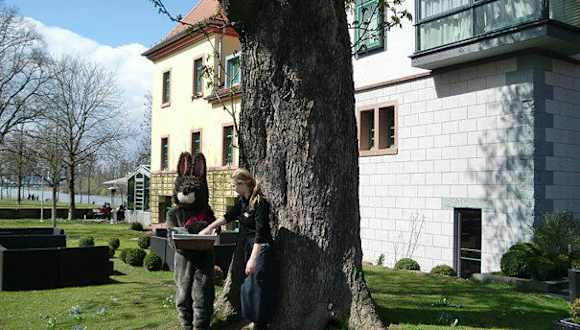 Von der Alten Brücke aus sind es nur ca. 2,5 km bis zur Gerbermühle auf der Sachsenhäuser Seite. Das kann man bequem, je nach Spaziertempo, in einer halben bis einer Stunde gehen, ein wunderschöner Spaziergang immer am Mainufer entlang. Wir sind mit unseren Rollern/Scootern hingefahren, andere fahren mit dem Fahrrad oder Inlinern - oder (viel weiter mit Umwegen) auch mit dem Auto. Und am Schluss sitzen die meisten dann im Sommergarten der Gerbermühle, deren Grundmauern seit dem 16. Jahrhundert stehen. Mancher erinnert sich dann an seine Goethe-Kenntnisse, der hier ca. 4 Wochen mit einer seiner "innigen Beziehungen" nochmals eine "temporäre Verjüngung" erlebte, er 66, sie, Marianne von Willemer, verheiratet, 30. Im Sommergarten, einer Art Biergarten, sitzt man herrlich unter großen alten Kastanienbäumen, kann Frankfurter Spezialitätengerichte von "Griie Soß" (7,90 €) über "Gref Völsing's Rindswurst" (3,90 €) oder "Handkäs' mit Musik" (3,00 €) genießen - oder auch nur eine Cola trinken. Und alles mit einem Blick auf die Skyline von Mainhattan hinter dem Main, gleich an der Offenbacher Mainschleuse. Hier haben wir uns prima ausgeruht - und sind dann mit unseren Rollern auf der City-Seite zurückgefahren, den Main kann man als Fußgänger hier über die fast 100 Jahre alte Deutschherrn-Eisenbahnbrücke überqueren, von der man so ziemlich den besten Blick auf die Frankfurter Skyline hat. Ein super Ausflug. Seit dem umfassenden Umbau 2007 ist das seit Anfang des Jahrhunderts bestehende Ausflugslokal, das nach dem Krieg Anfang der 70er Jahre wieder an alte Traditonen anknüpfte, ein kleines, edles Vier-Sterne-Hotel mit 19 Zimmern, davon 5 Suiten, bestens auch für "bessere" Familienfeiern geeignet. Der Wintergarten mit Restaurant macht Ausflüge in die Gerbermühle das ganze Jahr möglich.