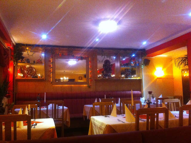 Wir empfehlen einen Tisch vorzubestellen. Die Atmosphäre ist prima, das Personal sehr aufmerksam, das Essen typisch indisch. Die Vorspeisen sind sehr üppig (nan=4 viertel Stücke), an Hauptspeise haben wir Enten (duck vindaloo) für 12,90 und Hühnchen (chicken tikka masala) für 11,90 Euro gegessen, sehr lecker und ausre3ichend große Portion. Leider sind die Getränkepreise fast unverschämt, 0,75 Wasser = 4,50 und 0,5 Liter Bardolino 8,50 €.