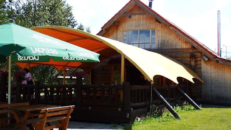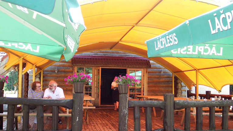Ein schönes Restaurant in einer Blockhütte direkt an der Gauja gelegen. Es ist teil einer Ferienanlage mit Minigolfplatz und 2 Gästehäusern. Besonders die schöne Außenterasse wusst zu punkten. Der Service war nett und freundlich. Das Essen war auch lecker. Knoblauchbrot und ein Salat haben geschmeckt. Auch die anderen Gerichte am Tisch waren zur vollsten Zufriedenheit. Geheimtipp wenn man sich mal ein bissle außerhalb der Haupstadt Riga aufhällt, insbesondere auch durch wunderbare nicht überlaufene Strände in der Nähe.