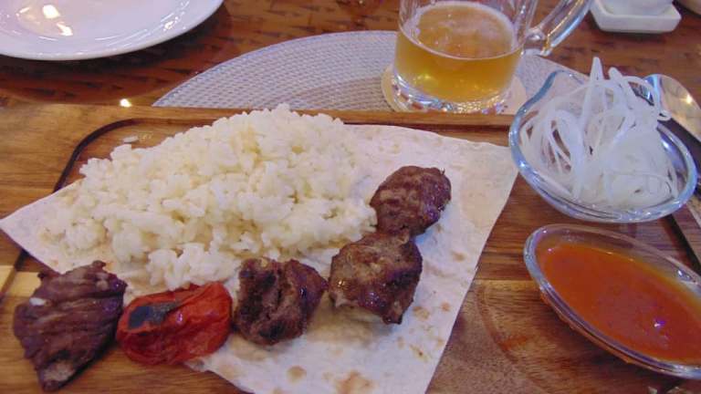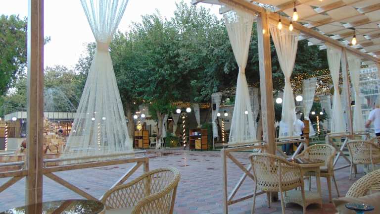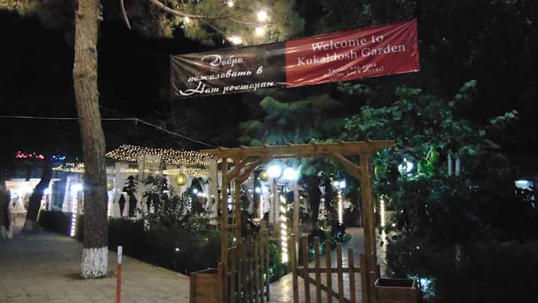 Das Kukaldosh Garden Restaurant befindet sich direkt schräg gegenüber der Nodir Devon Begi Medresse am Lyabi Hauz Wasserreservoir unmittelbar in der historischen Altstadt Bucharas und bietet zahlreiche TIsche unter Baldachinen und zum Teil auch unter Bäumen (im vorderen Teil). Das Ambiente ist wirklich malerisch - speziell am Abend, wenn über den Tischen die gespannte Beleuchtung mit tausenden von kleinen LED Birnchen eingeschaltet wird. Das Restaurant bietet lokale Küche an - die Speisekarten gab es bei meinem Aufenthalt in Buchara nur auf Usbekisch (ebenfalls in kyrillischer Schreibweise) und Russisch. Einige Kellner können allerdings etwas Englisch. Der Oberkellner ließ mich allerdings nicht im vorderen Teil im Garten sitzen, weil er meinte, ich sei alleine und da könnte ich ebenso hinten an den einem kleineren Tischen sitzen. Durchaus verständlich, wenn das Restaurant voll gewesen wäre oder in absehbarer Zeit voll gebucht gewesen wäre. Beides nicht der Fall - ich aß dann hinten und verließ das Restaurant ca. eine Stunde später und lief an mind. 5 leeren Tischen im Garten vorbei ... aber gut .. Die Musik im Restaurant (spanische Lationoschmacht) war einserseits auch unpassend und andererseits viel zu laut. Die Musik fing allerdings auch erst an, als ich schon bestellt hatte, sonst wäre meine Restaurantwahl evtl. auch anders ausgefallen. Die Speisen selbst - Fresh Salad (Tomaten, Zwiebeln, Gurken) und Beef Schaschlik und auch das Bier waren gut und schmackhaft - allerdings hatte ich Hähnchen bestellt (auch auf Russisch, daß ich hiVerständigungsschwierigkeiten ausschließen kann), und trotzdem kam Beef. Die Preise waren wie überall in Buchara - günstig! So hatte ich zusammen ca 85.000 Sum bezahlt = ca 7€. Die etwas ruppige "Ansage", als Einzelgast könne ich ebenso weiter hinten sitzen (vor allem bei leerem Restauant!), hat mich ehrlich gesagt etwas verärgert.