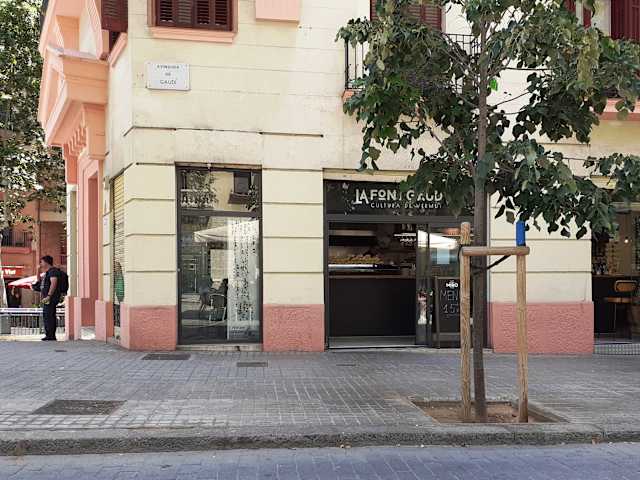 Die Av. de Gaudí ist die Verbindung zwischen der Sagrada Familia und dem historischen Krankenhauskomplex Sant Pau. Entlang dieser Straße, die Fußgängern vorbehalten ist, findet man Dutzende Restaurants und Cafés, die versuchen, die Touristenströme in ihren Laden zu lenken.