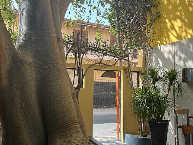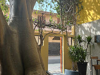 Ein kleiner Hof mit riesigem Baobab Baum. Wir haben den Tagesgeeicht genommen, Fisch mit Zitrone und Rinderfilet mit Kartoffeln, sehr fut beides, ca. 28€ zusammen. Drinnen schön gedeckt. It weissen Tischdecken, im Hof sitzt man auf hohe bequeme Hocker am hohem Tisch. Intime Atmosphäre, hier kommen eher französische Touristen.