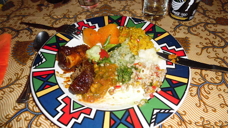 In die Townships zum Essen? Ja! Wenn man die Möglichkeit hat, sollte man sich dieses kulturelle und kulinarische Highlight nicht entgehen lassen. Wohlgemerkt, es ist schon ein etwas mulmiges Gefühl, wenn man aus dem Reisebus aussteigt und ein paar Meter zum Restaurant läuft, man fühlt sich eigentlich fehl am Platze. Sheila und Ihre Tochter betreiben des Restaurant in ihrem Wohnhaus nur für Touristen. Vor dem Essen erzählt Sheila ihre Lebensgeschichte. Dann wird man zu Buffet gebeten und die Speisen werden erklärt, dann kommt das große Geschmackserlebnis. Südafrikanisches Essen in Reinkultur, das Beste was wir auf der geamten Rundreise gegessen haben. Begleitet von Musik, fühlt man sich spätestens nach 30 Minuten wie bei Freunden. Vielen Dank an Sheila und ihre Tochter für dieses Erlebnis.