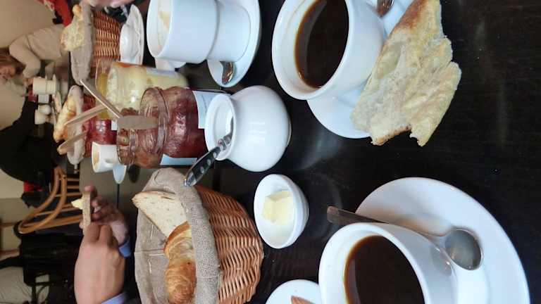 Schöner Innenhof in der Nähe vom jüdischen Viertel, aber etwas abseits. Als Urlauber kommt man hier nur durch einen Zufall vorbei. Die Bestellung gestaltete sich etwas schwierig ohne polnische Sprachkenntnisse. Die Einrichtung auf junge Leute abgestimmt, aber angenehm. Es wird versucht französische Stimmung zu erzeugen. Ich nahm ein Frühstück bestehend aus verschiedenen Brotarten, Croissant, diversen Arten toller Marmelade, weißer Schokolade. Das Brot war toll und wir waren sehr zufrieden.
