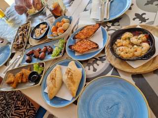 Super leckeres Essen; Pizza, Pasta, Tapas und mehr mit angemessenen Preis/Leistungsverhältnis. Auch der hausgemachte Sangria bekommt eine absolute Empfehlung und ist in kobination mit der direkten Strandlage schon fast ein Muss.