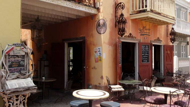 Mitten im bunten Pietermaai vereint das Restaurant „Mundo Bizarro“ so ziemlich alles, was den trendigen Stadtteil Willemstads ausmacht: In einem 200 Jahre alten Haus, das liebevoll renoviert wurde, präsentiert das Mundo auf zwei Etagen eine bunte Zusammenstellung aus Lounge, Bar und Restaurant. Über schweren Ledersesseln mit deutlichen Gebrauchsspuren und einer rot-samtigen Chaiselongue drehen sich träge die Holzflügel uralter Ventilatoren – eine Momentaufnahme Kubas. Dahinter liegt die Bar mit ihrem bunten Mosaiktresen und einer hohen Batterie an Flaschen, die von einem präparierten Schwertfisch bewacht wird. Von hier geht es über eine schmale Treppe in den ersten Stock, dessen Interieur sich ebenfalls nur schwer zwischen Kitsch und Antik einordnen lässt – der Name des kultigen Restaurants ist irgendwie überall Programm. Von einem sehr ansprechenden Frühstücksangebot spannt die Speisekarte des „Mundo Bizarro“ einen weiten Bogen über Vorspeisen, Salate, Meeresfrüchte und Fleisch: Carpaccio vom geräucherten Rinderfilet mit hausgemachter Trüffel-Mayonnaise und Parmesansplittern, Gambas an Mangosauce oder ein frisch gegrilltes Thunfisch-Steak auf Tomaten-Basilikum-Risotto – liest sich nicht nur lecker, sondern schmeckt auch so! Der Service des „Mundo Bizarro“ war bei meinen Besuchen flink und freundlich, abends spielt gelegentlich Live-Musik und das Preisniveau der Speisen und Getränke liegt in einem akzeptablen Rahmen. Für die schönsten Plätze ist auch unter der Woche eine Reservierung sinnvoll.