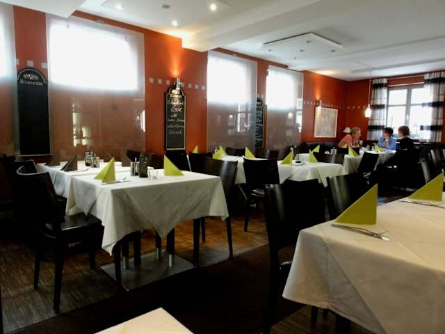 Das griechische Restaurant „Naxos“ in der Lichtenfelser Innenstadt hat nach längerem Leerstand und einem Besitzerwechsel unter dem neuen Namen wieder geöffnet und ich besuchte es an einem Freitagabend im Juli. Um Fotos „ohne Publikum“ machen zu können, erschien ich extrem früh und erlebte das Restaurant fast ausgestorben – im Verlauf des Abends füllten sich allerdings die Tische rasch, denn das „Naxos“ bietet eine authentische griechische Küche zu erstaunlich günstigen Preisen. Die Speisekarte umfasst eine größere Auswahl an Fisch- und Fleischgerichten, die mit zahlreichen Beilagen kombiniert werden können, so dass sich dort eigentlich jeder in seinen Vorlieben „wiederfinden“ kann, selbst wenn es „nur“ ein Salat sein sollte. Ein freundlicher und aufmerksamer Service nahm meine Bestellung entgegen und mit dem Getränk gab es einen traditionellen Ouzo „auf´s Haus“ – ein netter Start in den Abend. Ich wählte die Backofenspezialität „Lamm mit Riesenbohnen“ und erhielt nach einer angemessenen Wartezeit eine wirklich punktgenau gegarte Lammhaxe, außen knusprig und am Knochen noch rosa, die nur so gelingt, wenn der Backofen über eine ausreichend hohe Temperatur verfügt. Das Fleisch war zart und mediterran gewürzt und die Bohnen in ihrer tomatigen Sauce eine leckere Ergänzung - dazu wurde ein Korb mit Weißbrot gereicht. Ein griechischer Mocca, dem jedoch etwas die Süße fehlte, bildete den würdigen Abschluss eines gelungenen Abends. Im Sommer gibt es im „Naxos“ einen kleinen Innenhof mit schattigen Plätzen und vor dem Restaurant stehen mehrere Tische in der Sonne. Das Interieur des Restaurants geht äußerst sparsam mit der typischen folkloristischen Deko um und macht mit Glasflächen und Halogenspots in Kombination mit einer mediterraner Farbwahl der Wände und stilvollen Aquarellen einen gelungenen Spagat zwischen Lounge und gemütlicher Taverne. Schon ungewöhnlich! Das „Naxos“ ist eigentlich rund um die Woche so gut besucht, so dass eine Reservierung sinnvoll erscheint, um nicht enttäuscht wieder gehen zu müssen – ich kann den Besuch dieses Restaurants ohne Einschränkungen empfehlen.