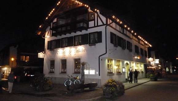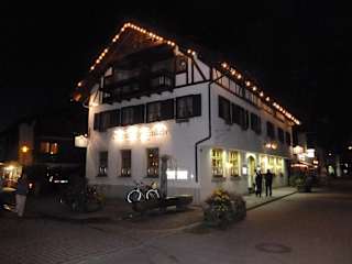 Gasthof in Mitten von Oberstdorf, Pfarrstraße, in der Nähe zum Hotel Mohren sowie der Kirche in Oberstdorf. Ca. 5 Gehminuten vom Bahnhof entfernt Sehr gutes Essen, Preisklasse angemessen (z.B. Rumpsteak ~250-300g sowie wirklich frische und selbstgemachte Bratkartoffel, dazu frische Bohnen EUR 18,90 od. sehr zartes Cordon Bleu vom Kalb mit Pommes EUR 16,90) Geschlossen von Mitte Nov.'10 bis Anf. Dez.'10