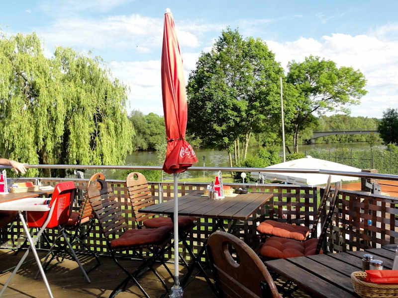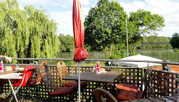 Am Auedamm an der Fulda liegt das Restaurant „Riverside“ – ein passender Name, denn auf der schönen Sonnenterrasse sitzt man mit einem wunderbaren Blick auf den Fluss, der hier sanft in Richtung Innenstadt fließt. Die Speisekarte des Restaurants ist unerwartet vielfältig und bietet neben nordhessischen Spezialitäten wie der „Ahle Wurscht“ und dem „Schmandschnitzel“, das auf einer Speisekarte in Kassel nicht fehlen darf, einen bunten Mix aus Fleisch, Fisch und Fingerfood. Ich bestellte um die frühe Mittagszeit ein „Zwiebelschnitzel“ mit Salat und Pommes frites zum Preis von 9,50 und war überrascht, was die Küche zu diesem Preis lieferte: Das Schnitzel präsentierte sich groß und zart, fein paniert und mit reichlich Röstzwiebeln bedeckt. Die begleitenden Pommes frites kamen direkt vor wenigen Sekunden aus der Friteuse und waren so heiß, dass eine Wartezeit nötig wurde, um sie zu essen – wow, das gibt es sonst nur in Belgien... Wer im „Riverside“ einkehrt, darf bei einem Preisniveau der angebotenen Gerichte im Rahmen der „10-Euro-Grenze“ sicherlich keine Haute Cuisine erwarten, kann sich dafür aber einer fairen Küchenleistung sicher sein. Der Gastraum des „Riverside“ ist hell und freundlich, lässt aber mit seinem nüchternen Auftritt etwas an Fantasie vermissen und erinnert eher an ein Vereinslokal – da ist gestalterisch noch deutlich Platz nach oben... Im Fazit: Bei „Terrassenwetter“ ein netter Platz zur Einkehr unter den Schirmen des Freisitzes, flinker Service und ein faires Preis-Leistungsverhältnis bei bodenständig-ambitionierter Küche mit Lokalkolorit - mir hat´s hier gefallen.