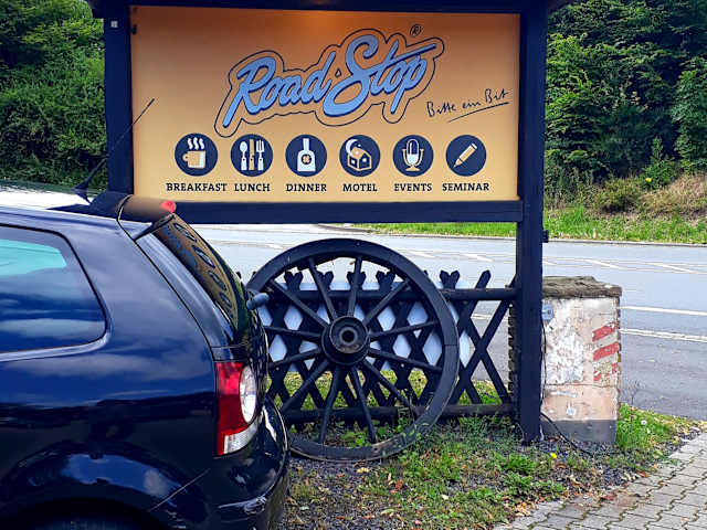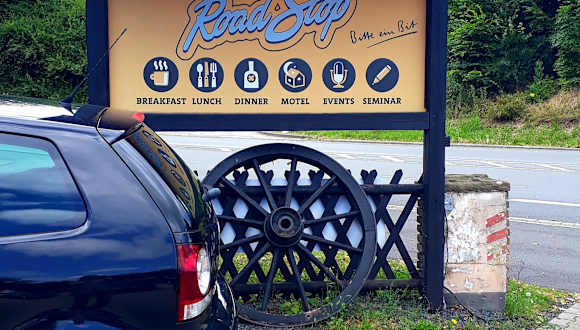Das Road Stop Restaurant haben wir zu einer Feierlichkeit mit mehreren Personen besucht. An einem Samstag ab 14 Uhr (zwischen Mittagessen und Abendessenzeit) war es weniger voll als durch Hörensagen bekannt. Von anderen Personen hatte ich schon gehört, dass sie auch mit nur 2 Personen nach Hause geschickt wurden, weil sie nicht reserviert hatten. Der großzügige Restaurantbereich ist in mehrere Bereiche aufgeteilt und es gibt auch eine Kinderecke bzw. Spieleecke. Im Außenbereich gibt es ebenfalls verschiedene Bereiche mit Spielplatz und Grillstation. Beim Road Stop handelt es sich nicht „NUR“ um ein Restaurant, sondern es werden auch zahlreiche Events angeboten wie Grillkurse, Getränketastings u.a. Das Essensangebot beinhaltet klassische amerikanische/mexikanische Küche wie Burger, Wraps, Steaks, Nachos und Salate. Sehr umfangreich ist die Getränkekarte. Im Angebot sind neben den alkoholfreien Getränken und Mocktails auch Cocktails und eine große Auswahl an Biersorten (z.B. gibt es hier auch mein favorisiertes Bananenbier). Die Preise sind gehoben und nicht in allen Bereichen gerechtfertigt. Die Hauptspeisen haben uns durchweg gut geschmeckt, aber vom Käsekuchen Nachtisch war ich persönlich sehr enttäuscht. Das Ambiente ist ein absolutes Highlight. Die Innenausstattung ist sehr speziell und mit Liebe zum Detail gestaltet. Der Service war hervorragend. Dem Haus angeschlossen sind auch 6 Hotelzimmer die individuell eingerichtet sein sollen und ab 39 Euro buchbar sind. Gerne hätte ich mir zumindest einmal eines der Zimmer angeschaut, aber laut Aussage des Rezeptionisten habe ich leider 2 Stunden zu spät gefragt (erst nach dem Essen). Vor dem Essen um 14 Uhr wäre es möglich gewesen da dann die Zimmer gereinigt sind, aber noch kein Check ist. Schade, aber vielleicht beim nächsten Besuch. https:// www. roadstop. de