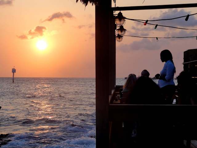 Das Restaurant “Scampi´s” liegt in der historischen Wehranlage „Waterfort“ unweit von Queen-Emma-Bridge und Handelskade und bietet auf seiner Terrasse direkt am Meer eine schöne Auswahl an Meeresfrüchten und Spezialitäten vom Grill. Von gratinierten Muscheln in Weißwein-Knoblauchsauce über frischen Hummer (nach Tagespreis), Jumbo-Shrimps in Ananas-Sauce bis zu einer gemischten Grillplatte mit Steaks und BBQ-Ribs ist das Angebot breit gefächert. Ich bestellte Scampi- und Hähnchenspieße auf Orangensauce mit Beilage zum Preis von 23,40 US-$ und war von der Qualität durchaus begeistert, während die Portionsgröße etwas übersichtlich ausfiel. Den nur wenig motivierten Service im „Scampi´s“ habe ich als Chance begriffen, in Ruhe den Sonnenuntergang über dem Meer betrachten zu können.