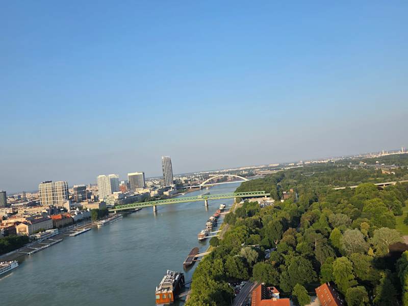 Ufo-Besuch ist auf jedem Fall zu empfehlen. Vor allem beim Sonnenuntergang ist die Aussicht auf Bratislava aus der Aussichtsplatform traumhaft schön. Vom Essen im Restaurant waren wir sehr enttäuscht. Nur die Namen von Speisen sind atraktiv, aber das, was präsentiert wurde, war alles andere als frisch. Und der Wein war teuer nur von Preis, nicht von der Qualität. Einzig die Käse-Platte mit frischen Brötchen war prima. Kleine Aufmerksamkeit des Chefkochs (Mini-Gurkensuppe als Überraschung nach der Vorspeise und ein mini Küchlein zum Mittnehmen) haben wir nett gefunden. Im Restaurant war es sehr dunkel, man konnte die Speisekarte nicht gut lesen und man hat nicht gesehen, was auf dem Teller war. Meine Empfehlung: Aussicht aus der Terasse geniessen und einen Kaffee am Bar trinken. Für das Geld fürs Essen und Wein im Ufo kann man in Bratislava ganze Woche gut essen.