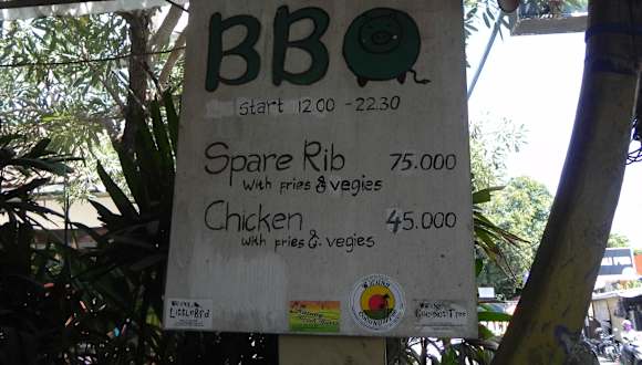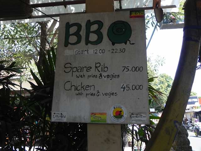 Im Warung Coconut Tree in Sanur haben wir öfter gegessen. Er liegt mitten im Ort an der Hauptstraße und überzeugt mit gutem Essen zu sehr günstigen Preisen. Es ist sehr einfach und rustikal eingerichtet, im Hintergrund läuft aktuelle Musik und es herrscht eine tolle entspannte Stimmung. Absolut empfehlenswert.
