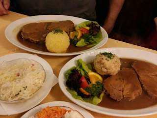 Wir kamen nach dem Wandern hierher und brachten wirklich viel Hunger mit - aber immer noch nicht genug für diese riesen Portionen! Ich hatte den schweizer Wurstsalat und mein Freund Leberkäs mit Kartoffelsalat und Spiegelei - beides schmeckte echt gut, allerdings schaffte ich meine Portion nur gut zur Hälfte und auch mein Freund musste seinen Kartoffelsalat übrig lassen, da wirklich gar nichts mehr reingepasst hat. Das ganze noch zu einem wirklich angemessenem Preis - hier kann man nicht viel verkehrt machen.