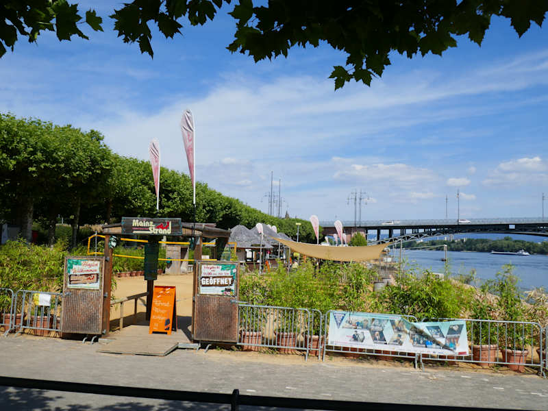 Das Rheinufer wird unterteilt in 3 Uferabschnitte. Das Adenauer-Ufer beginnt in der Neustadt, es reicht bis zum Fischplatz. Das Stresemann-Ufer welches dann am Fort Malakoff endet, dann das Victor- Hugo Ufer, das geht bis zur Eisenbahnbrücke. Im Abschnitt des Adenauer-Ufers befindet alles was im Abschnit bis zur Altstadt ist. Im Sommer ist das Ufer dann attraktiv, weil hier Liegewiesen und auch Sandaufschüttungen sind. Auch der Frauenlobbrunnen ist hier und der ist besonders bei den kleinen Kindern beliebt, diese können in die Brunneschale klettern und in den kleinen Fontänen baden, vollkommen gefahrlos. Auch eine kleine Baumallee folgt dann bis zur Bademöglichkeit, diese kostet aber Eintritt. Es geht weiter bis zum Hilton-Brunnen mit den Sitzbänken. Damit die Kurfürsten in Erinnerung bleiben hat die Stdt an diesem Brunnen 6 Steintafel aufgestellt mit den Hinweisen auf die Kurfürsten. Ab dem Stresemann - Ufer ist der Fischbrunnen so interressant. Vornehmlich legen hier die Stromkreuzfahrtschiffe an. Dann kommt das Ufer mit dem Fort Malakoff, hiergibt es die Möglichkeit bei schönem Wetter das gastronomische Angebot zu testen.