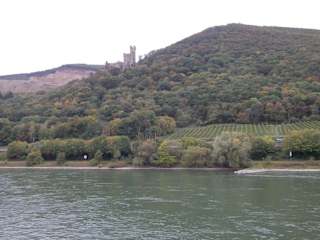 Wir machten mit einer Reisegruppe eine Ringtour um Rüdesheim. Vom Busparkplatz aus liefen wir die Drosselgasse hoch zur Seilbahn Richtung Niederwalddenkmal. Nach wenigen hundert Metern ist das Denkmal erreicht mit großartiger Sicht auf den Rhein mit zahlreichen Burgen. Vom Denkmal aus führt ein etwa drei km langer (leichter) Weg zur Bergstation von Assmannshausen. Kurz davor befindet sich ein schönes Lokal, wo man unter Bäumen eine Kleinigkeit essen und trinken kann. Nach der Abfahrt mit dem Sessellift geht man in Assmannshausen zum Schiffsanleger der Köln-Düsseldorfer und fährt in etwa zwanzig Minuten zurück über Bingen nach Rüdesheim. Zur Schlussrast kehrten wir in"Breuers Rüdesheimer Schloss" in der Drosselgasse ein. Das Essen war preislich noch akzeptabel, aber 9 Euro für ein Glas Spätburgunder vom heimischen Winzer (0,2 l) sind ziemlich dreist. Die weltberühmte Drosselgasse bietet außer ein paar völlig überteuerte Lokale und Andenkengeschäfte mit dem üblichen sinnlosen Plunder überhaupt nichts.