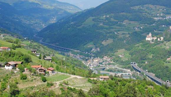Nach der Besichtigung der berühmten Erdpyramiden fuhren wir auf der alten Kaiserstraße zurück ins Eisacktal. Da in grauer Vorzeit die Eisackschlucht unpassierbar war, führte die Route vom Brenner nach Rom über den Ritten. Fürsten, Könige, Kaiser auf dem Weg zur Krönung nach Rom, und Händler benützten diese Straße, wahrscheinlich noch früher sogar schon Räter und Römer. Die Straße ist sehr eng, kurvig, oft einspurig, man muss konzentriert fahren. Wirklich kaiserlich ist jedoch die schöne Landschaft und der Blick ins Eisacktal ist einmalig. Man fährt durch den hübschen Ort Barbian mit dem schiefen Kirchturm und bei Waidbruck gelangt man wieder ins Eisacktal.