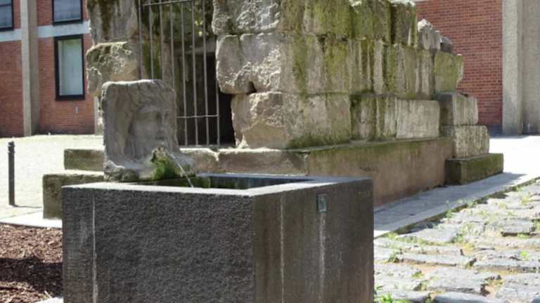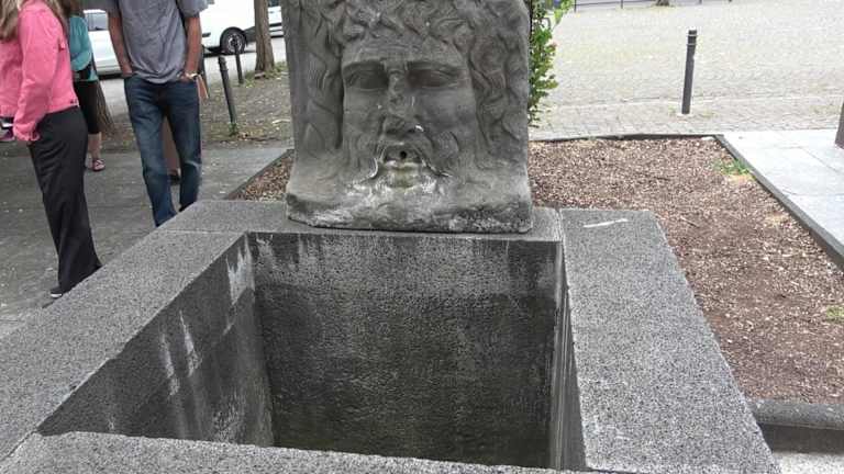 In der römischen Hafenstraße, direkt neben dem Römisch-Germanischen Museum, befindet sich ein schöner Brunnen. Neben dem Basaltbelag der Straße ist ein viereckiges Becken aus. Darauf steht ein Wasserspeier. Es ist ein Gesicht mit wallendem Haar und Bart. Aus dem Mund tritt Wasser aus. Adresse: Trankgasse 20, 50667 Köln Geodaten: WXR5+4H Köln