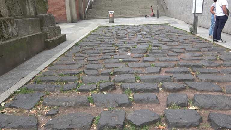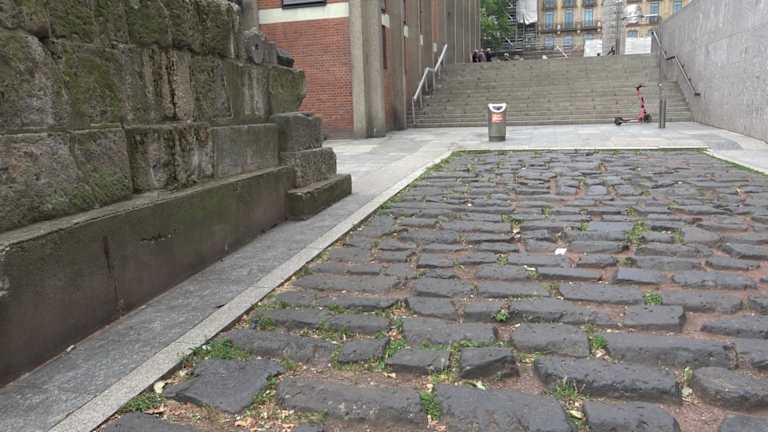 Im Rahmen des Baus des Römisch-Germanischen Museums wurde wohl die ehemalige römische Straße entdeckt. Da diese offenbar der Einfahrt für die Tiefgarage im Weg war, wurde die Straße ausgegraben und verlegt. Dabei war der Straßenabschnitt wohl vor dem "Umzug" in besserem Zustand wie man das heute vorfindet.