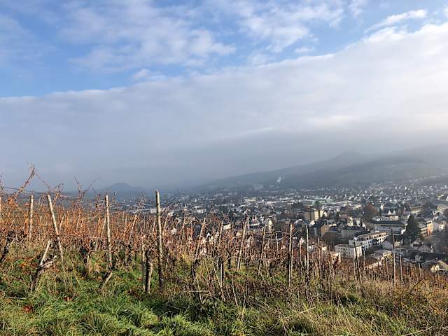 Man hat einen wunderschönen Blick in die Weinberge und das Ahrtal.