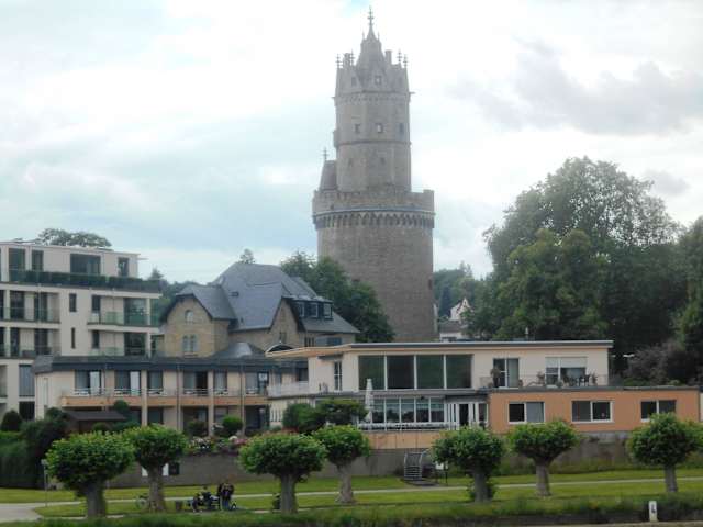 Am nordwestlichen Eckpunkt der Stadtmauer befindet sich der „Runde Turm“ genannte Wehrturm, der als Wartturm der Stadtbefestigung in den Jahren 1440 bis 1453 errichtet wurde. Mit einer Höhe von 56 Metern bis zur Turmspitze und bis zu 5 Meter dicken Mauern ist er der höchste Wehrturm am Rhein und einer der größten mittelalterlichen Wehrtürme überhaupt.