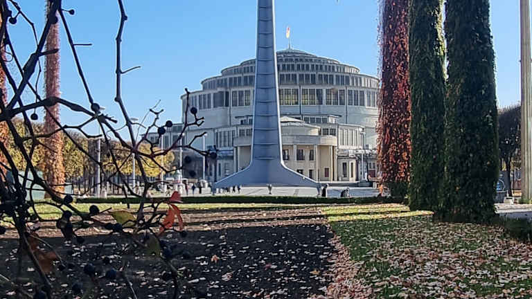 Die Nadel-Iglica- ist ein nadelförmiges Bauwerk.Sie befindet sich vor der Jahrhunderhalle und wurde 1948 zu Ausstellung " wiedergeonnene Gebiete" errichtet.Die Nadel ist 90 m hoch.