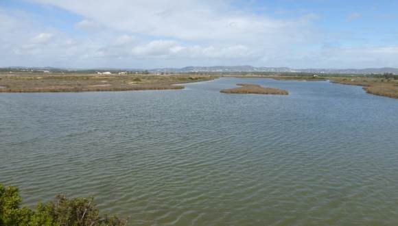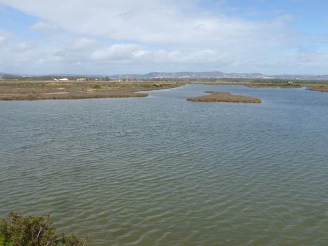 Zwischen Flughafen und dem Atlantik findet man Salinen (Salinas) vor, in denen noch immer Salz durch Verdunstung gewonnen wird. Manche der Salinenfelder wurden zwar aufgegeben, andere werden aber noch geflutet und das Salz wird noch „abgebaut“. Man läuft über breite Wege entlang der Salinenfelder und sieht in die mit Wasser gefüllten Felder, auf denen teilweise ein weißer Schaum aus Salzkristallen ist. Die einzelnen Salinenfelder sind durch Dämme voneinander abgetrennt. Neben den Salzfeldern gibt es auch Seen, in denen man Flamingos und andere Vögel beobachten kann. Da die Entfernung zum Flughafen von Faro nicht weit ist, ziehen immer wieder startende oder landende Flugzeug über die Salinen und über die Köpfe der Menschen, die hier unterwegs sind, hinweg.
