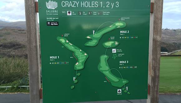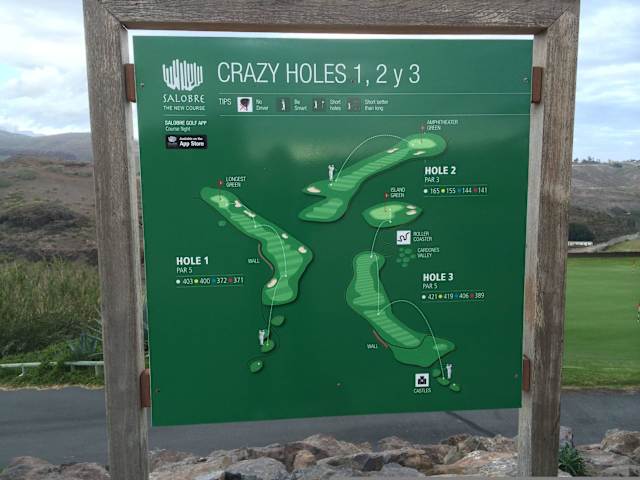 Ein neuer Platz mit nicht spektakulärem Ausblick an einer 5 Sterne Anlage (Sheraton und Villen). Ca. 100 Euro in der Saison mit 1/2 Buggy (Pflicht), dafür aber sehr sehr guter Service. Leider fanden 3/06 noch Bauarbeiten statt. Der Südplatz ist fertig und in sehr gutem Zustand. Der Nordplatz wird noch gebaut. Für Urlaubsgolfer ein guter Platz, da nicht zu schwer (fast kein Rough, nur wenig out of bounds.) Lagebeschreibung: Breite : 27.776856° Länge : -15.641010° Google Earth : http://bbs.keyhole.com/ubb/showthreaded.php/Cat/0/Number/251445/an/0/page/0 Auf der GC-1 zwischen Maspalomas und Arguineguin bei km 53 abfahren und der Beschilderung folgen. Hinweis/Insider-Tipp: Südplatz Par 71 Gelb : CR 69, 1 SR 118 Blau : CR 71, 10 SR 117 http://www. salobregolfresort.com http://www. satocan.com/salobregolf/