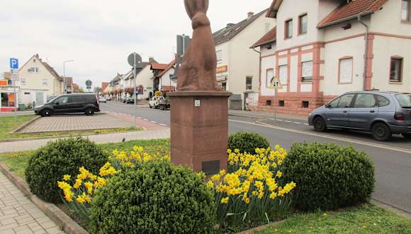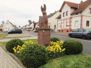 Ein Hase auf deinem Sockel. Klingt merkwürdig, ist aber das Wahrzeichen von Kahl am Main. Dieser ist aus dem Region eigenen Sandstein im Jahre 1952 errichtet worden und bietet ein niedliches Fotomotiv!