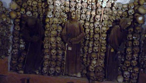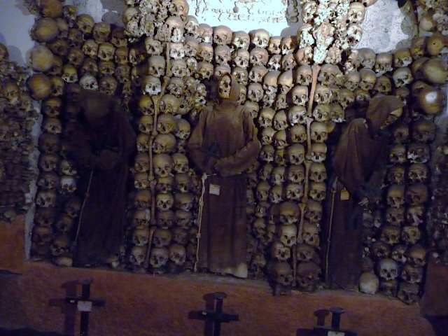 Diese Kirche in Rom ist nichts für schwache Nerven. Die Kirche gehört zu dem merkwürdigsten Sehenswürdigkeiten in Rom und taucht fast in keinem Reiseführer auf. Obwohl die Kirche fast im Zentrum ist. Die Kirche ist eher normal, aber in der Krypta direkt daneben kann man was erleben. Täglich von 9-12 und 15-19 Uhr geöffnet. Eintritt kostet nix. Eine Spende am Ausgang kann man geben. In der Krypta liegen offen die Skellete und Knochen von über 4000 Kapuzinermönchen! Viele Knochen wurden zu makaberen Kunstwerken und Mustern zusammengefügt. Es gibt Knochenlampen und nette Muster aus Kiefernochen. Wirklich sehenswert. Der Aufenthalt wird je nach Interesse ca. 20 Minuten betragen. kommt darauf an wie lange es man aushält. Nichts für schwache Nerven! Achtung Fotos machen ist strengstens verboten! Lagebeschreibung: Krypta von Santa Maria Concezione in der Via Vittorio Veneto 27 direkt neben den Kircheneingang. Mitten in Rom. Hinweis/Insider-Tipp: Kostet keinen Eintritt, man kann aber etwas spenden. Metro ca. 5 Minuten Fussmarsch. Station Barberini die rote Metrolinie