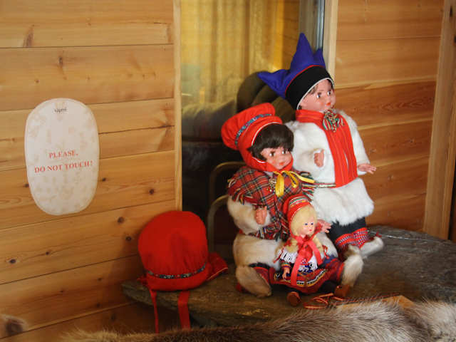 In Karasjok machten wir auf dem Parkplatz vor dem Sapmi Park einen kurzen Zwischenstopp. Eine junge hübsche Frau in Samen-Tracht begrüßte uns bereits am Parkplatz. Das samische Volk wird oft mit dem Begriff "Lappen" bezeichnet, sie selbst ziehen jedoch die Bezeichnung Samen vor. Karasjok ist neben Kautokeino das zweite Zentrum der norwegischen Samen. Hier befindet sich der Sitz des autonomen Parlaments der Samen. 90% der knapp 3.000 Einwohner sprechen samisch. Am 9. Oktober 1989 wurde das Samenparlament in Karasjok von König Olav V. feierlich eingeweiht. Das Samenparlament hat die Aufgabe, die kulturelle Selbstbestimmung dieses Minderheitenvolkes zu stärken und umzusetzen. Die 43 Vertreter/innen des Samenparlaments werden für 4 Jahre gewählt. Ein Erfolg der Samen war zum Beispiel, dass in Regionen mit überwiegend samischer Bevölkerung wieder in deren Muttersprache unterrichtet wird. Der Sápmi Park in Karasjok ist ein Kultur- und Themenpark. Er will auf abwechslungsreiche Art und Weise auf die Kultur der Sámi und ihre Traditionen hinweisen und uns ihre Mythologie und ihre Geschichte zeigen. Leider war die Zeit für uns zu kurz und auch der Eintrittspreis zu hoch, um den Themenpark zu besichtigen, so schauten wir uns nur den Innenbereich des Sapmi Parks den großen Souvenirladen der Samen an. Die Waren der Samen werden in diesem Geschäft bestens vermarktet. Bunte Trachten, Schuhe und Hüte, Rentierleder sowie Kunsthandwerk aus Holz und Leder wurden hier u.a. verkauft. Ein deutsch sprechender Norweger erzählte mir, dass während der Weidezeit im Herbst und Winter sich etwa 60.000 Rentiere in der Gemeinde Karasjok befinden. Da wir bei unserer Busreise kaum Rentiere sahen, kann ich mir das kaum vorstellen. Der Zwischenstopp in Karasjok mit dem Besuch des Souvenirladens des Sapmi Parks war für unsere mitreisenden Frauen trotzdem sehr interessant.