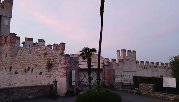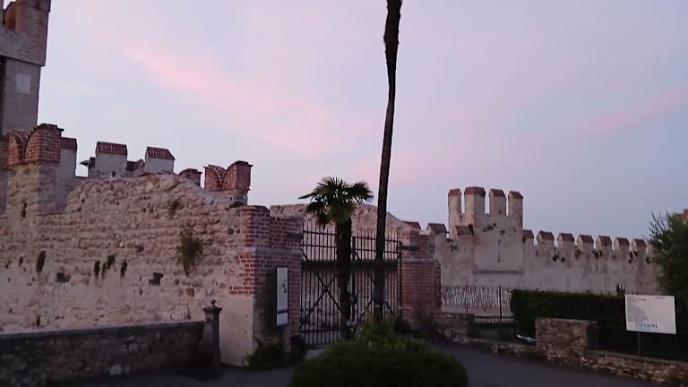 Die Burg mit ihrer Zugbrücke bildet das Tor nach Sirmione und die Lage ist schon sehr beeindruckend . Es gibt einen kleinen Hafen innerhalb der Burgmauern , ansonsten gibt es nicht viel zu sehen . Auf jeden Fall sehenswert , vom höchsten Turm genießt man einen atemberaubenden Blick auf den Gardasee . Leider ist es sehr voll , ja schon prozessionsartig steigen die Leute den Turm hinauf . 4 Euro Eintritt