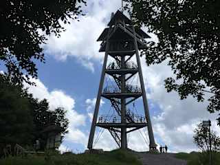 Das Besondere am Turm in Holzfachwerkbauweise ist die dreieckige Plattform. Diese wird von drei im Freiburger Stadtwald am Schauinsland geschlagenen Douglasien getragen. Ein offener stählerner Treppenaufgang führt über 85 Stufen auf die hochgelegene & überdachte Plattform. Von hier aus hat man einen 380°Panoramablick auf Freiburg und das Rheintal bis hin zum blauen Band der Vogesen. Von der Bergstation benötigt ihr ca. 15 - 20 Gehminuten zu dem Aussichtsturm. Der Eintritt ist frei!